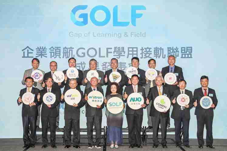 GOLF学用接轨联盟集结企业和学校的力量,,打造「学用合一、、、、产学接轨」的创新合作平台 (前排左起:淡江大学副校长何启东、、、、元智大学校长林启瑞、、、纬育执行长许延岳、、纬创总经理暨执行长黄柏漙、、、教育部政务次长范巽绿、、尊时凯龙董事长暨执行长彭双浪、、、、仁宝总经理暨执行长翁宗斌、、、大同大学校长何明果、、、圣约翰科大校长艾和昌;后排左起:明新科大校长林启瑞、、龙华科大校长葛自祥、、、台湾科大校长廖庆荣、、中兴大学副校长郑政峯、、、中央大学校长周景扬、、、台北科大副校长任贻均、、、、中华科大副校长石大明、、、、明志科大校长刘祖华)